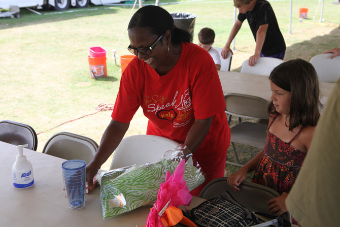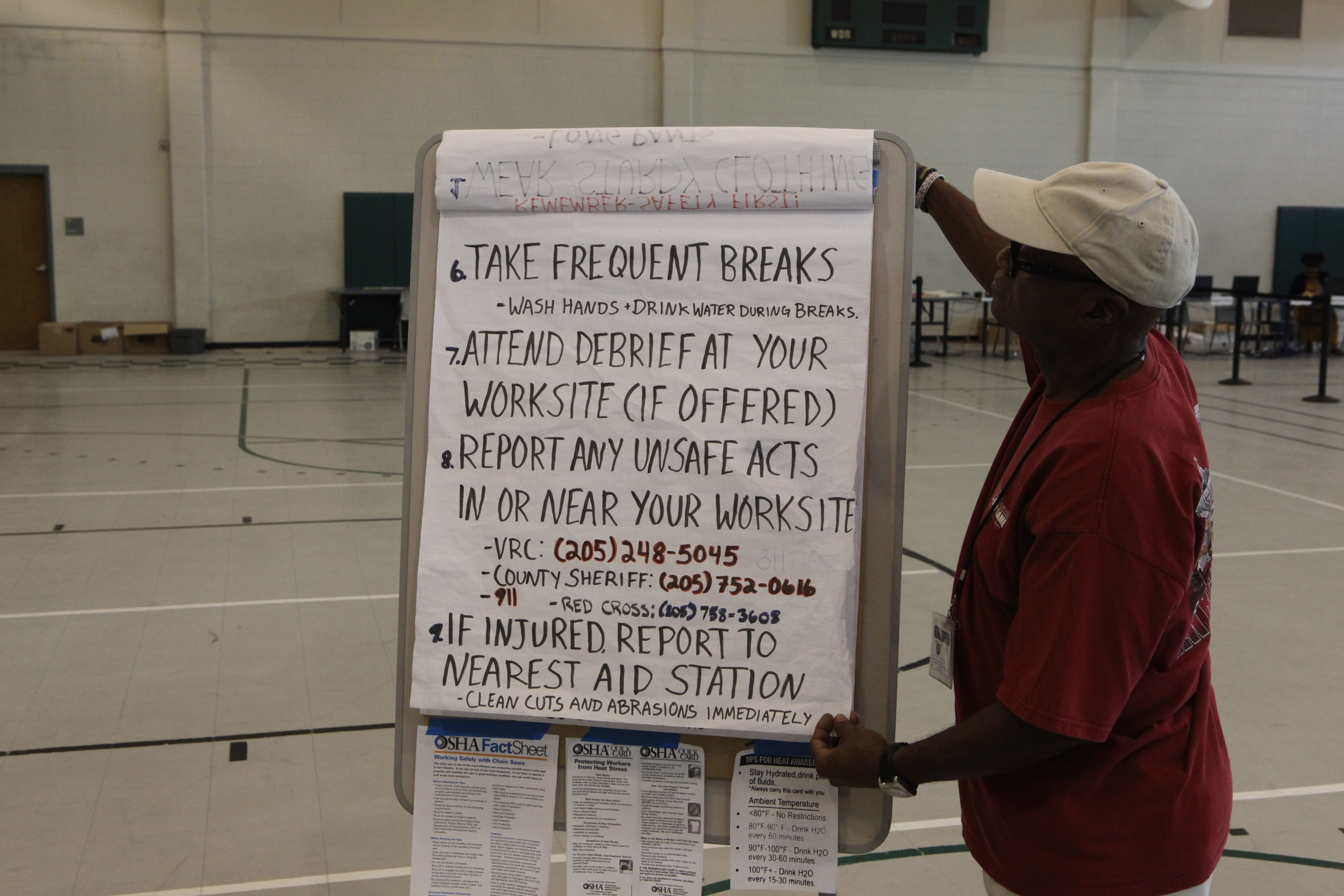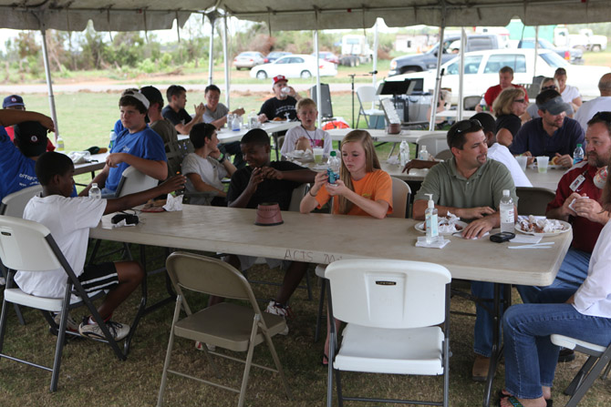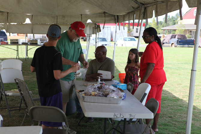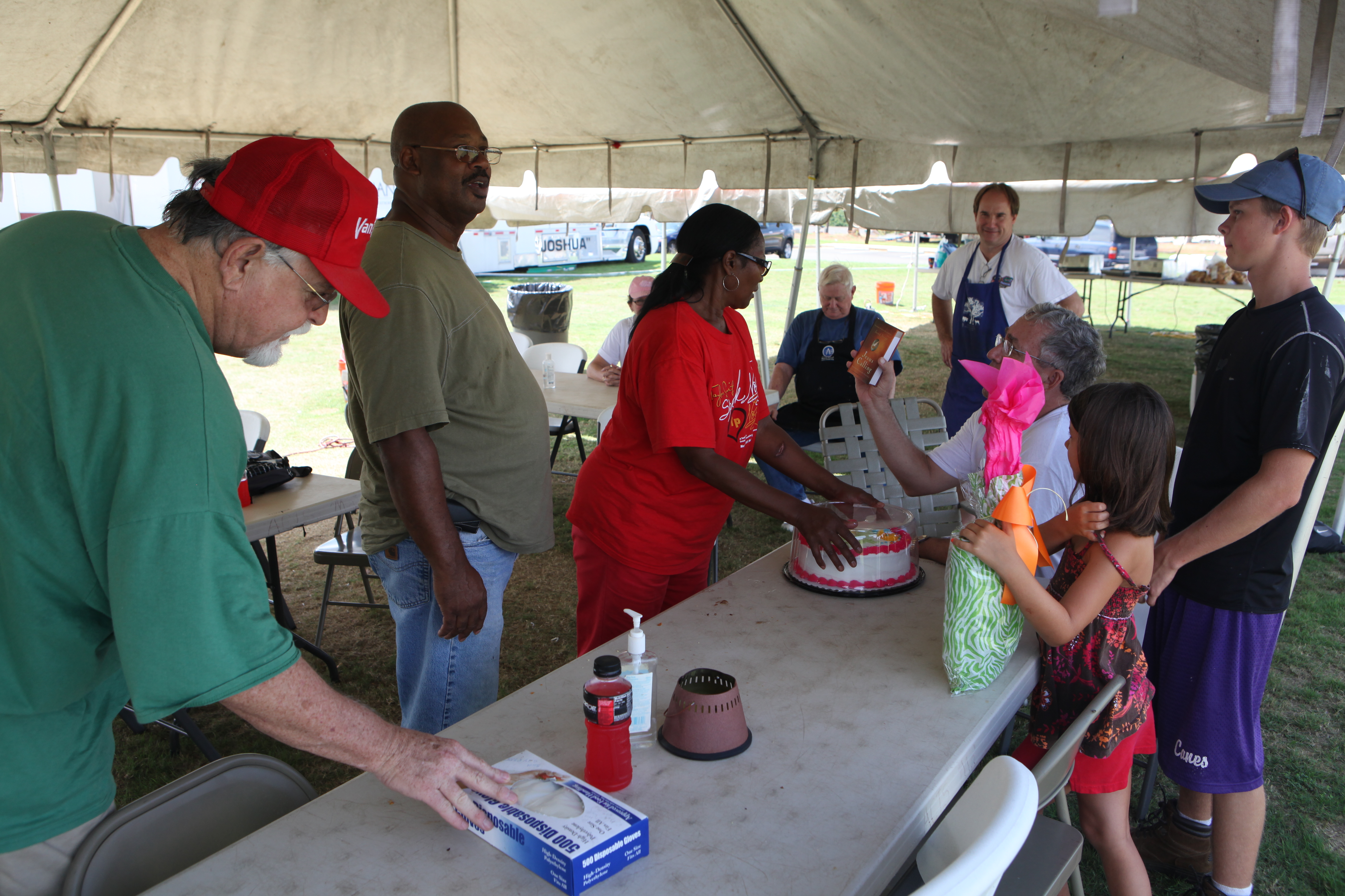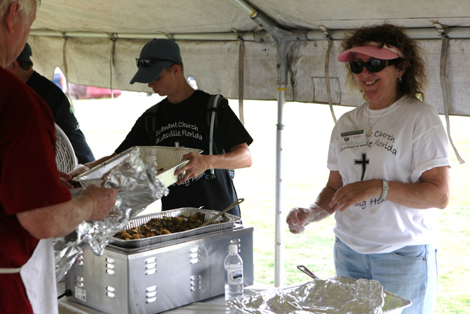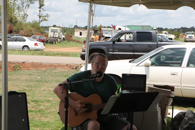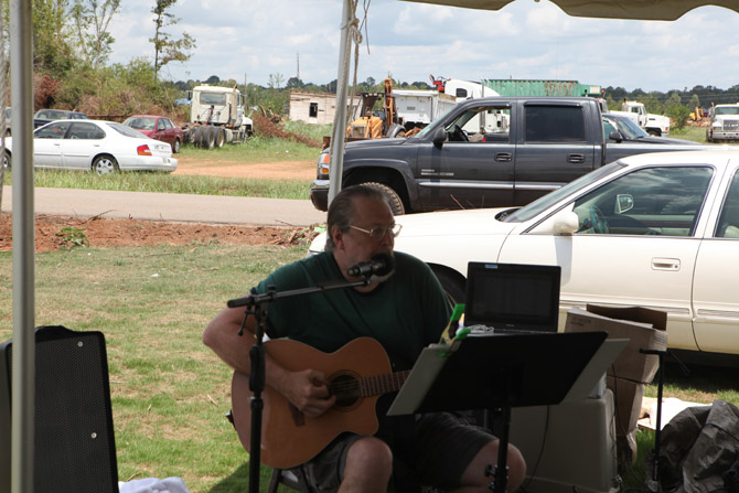 On a Wednesday morning, I drove from Mt. Union to Tuscaloosa just in time to set up my equipment for the lunch event. I had no idea what to expect but one thing I did not expect was to be playing outdoors in 95 degree heat and no breeze. There was a church there at the site where we were to be providing meals and I had thought we would be inside. But NO, we were outside, albeit under some tents, and it was HOT HOT HOT. But, no whining, I just had to set up and get started. I had brought my portable PA system and some cordless microphones so there was a bit of work to do before I could start but I got it done and started playing.