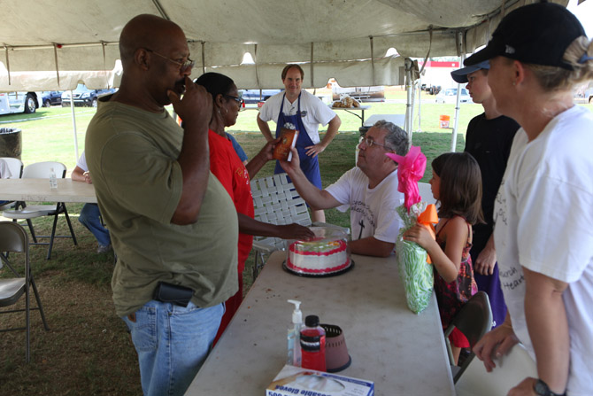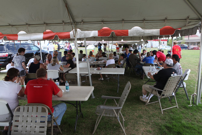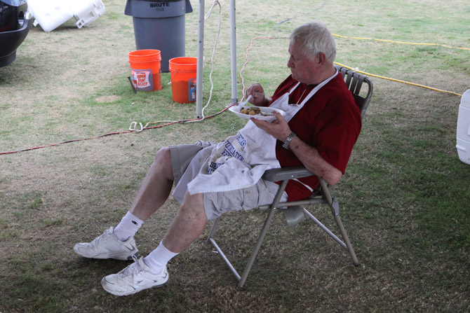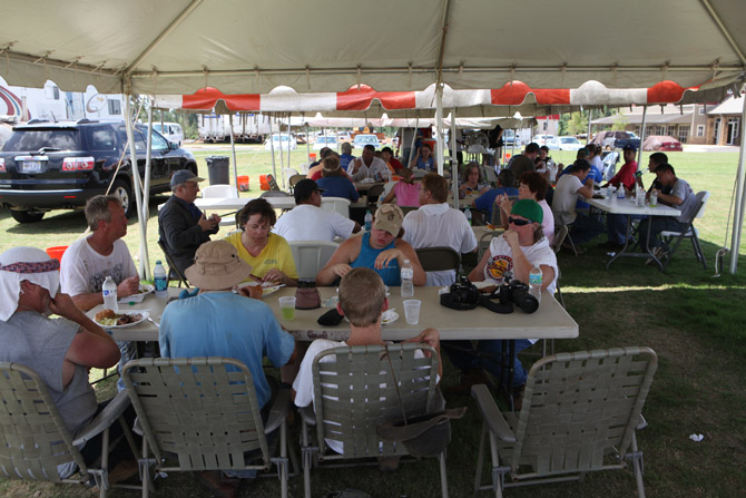 I believed that there would be a different crowd each day. But when lunch time came around the folks from Ohio, and I am going to use the word 'rushed', to get to the tables near where I was set up. They had a completely different look to them. They were glad to be there. OK, I know it was really because they knew they would get fed and watered but there was more to it and I could tell. When I would finish a song they would clap earnestly and actually call out my name. Now I don't even know how they learned my name but someone at least had to ask. Since the same folks were there from the day before I had to dig up new songs (an hour and a half) so I was reading the music as I played and not looking out very much. At the end of one of my songs, which I thought I had done well, there was no clapping or really no sounds at all. I looked up and saw that everyone was busily chowing down on their BBQ ribs. There was a little moment where they realized that I wasn't playing and they weren't responding and we looked at each other. Several of them broke out in laughter and started clapping with one hand and saying "Thank you Earl". Still, we know what's important, it's the ribs, and I will tell you that they were yummy!