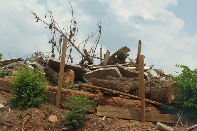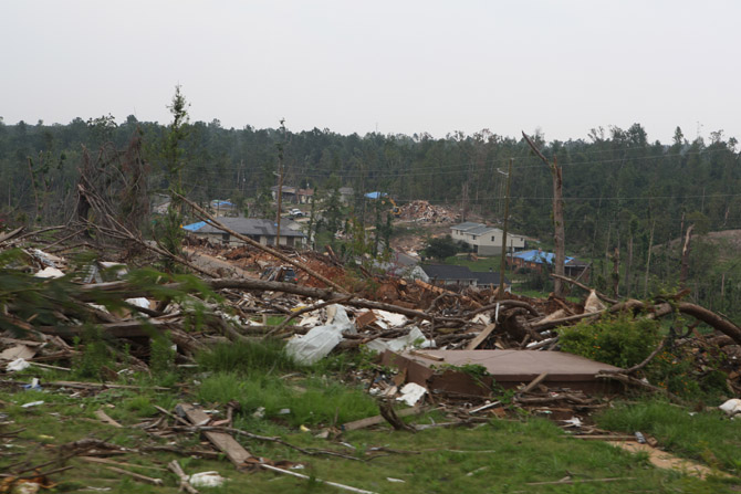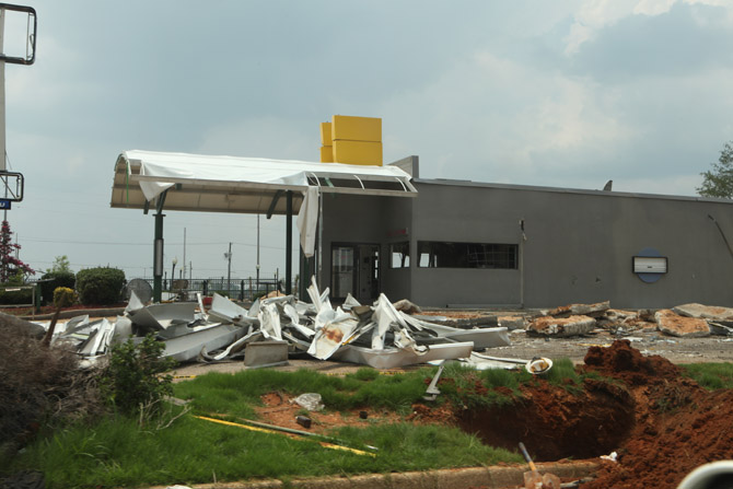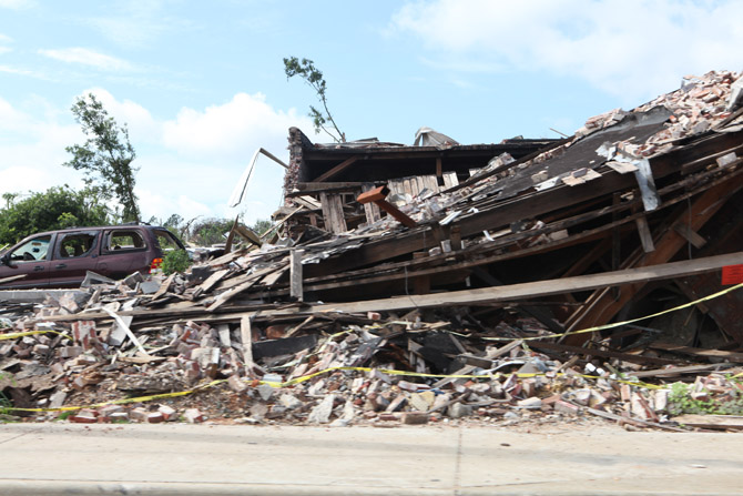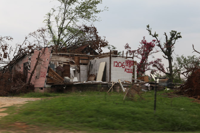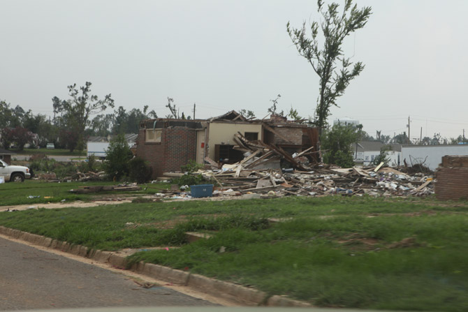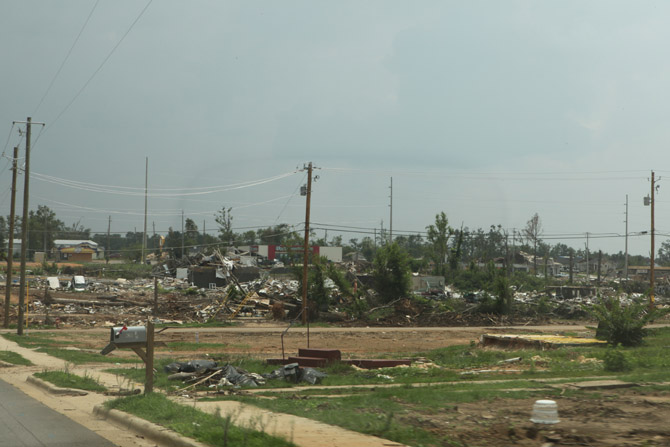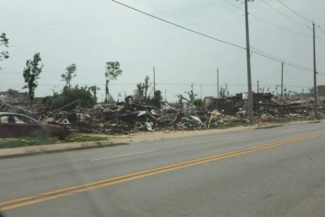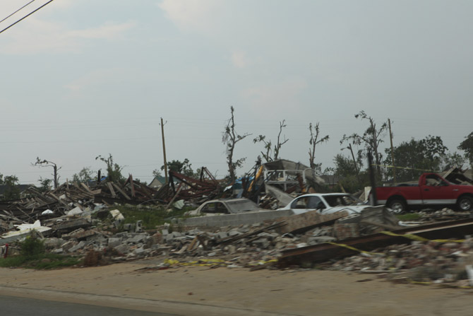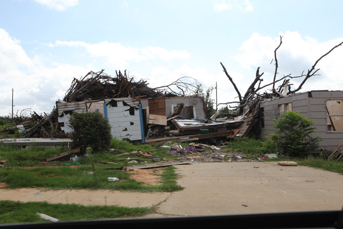 It came time for them to leave and as they did they all said goodbye. Wow. So I ate a few ribs (once again rescued for me by Chanda) packed up and headed back out to get more pictures. I managed to make a pretty large dent in the tornado path this time but continued to find new places of twisted metal, missing homes and busted trees. By this time I had taken at least 1,000 pictures. I went back to my hotel and spent some time editing them that evening.