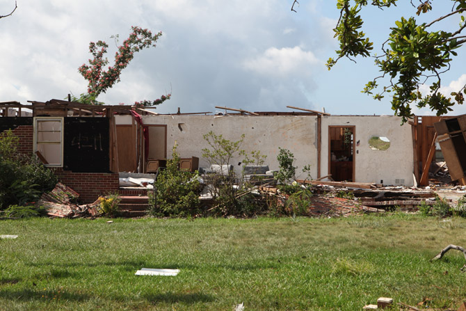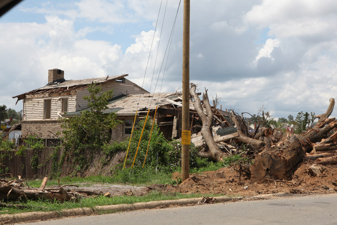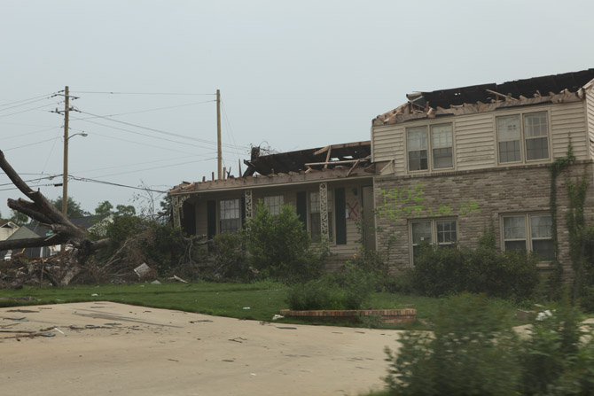 Then I packed up my equipment and headed out to take pictures of the tornado damage. It wasn't hard to find. I drove down street after street with houses that were either severely damaged, destroyed or just completely gone with nothing left but a slab of concrete and flowers or shrubs. If you were a tree, you were no longer there. I was stunned at the amount of devastation but equally stunned to see residences that were untouched right next to houses that were just blown up from the inside out. It was an eerie sight. I got nowhere near being done.