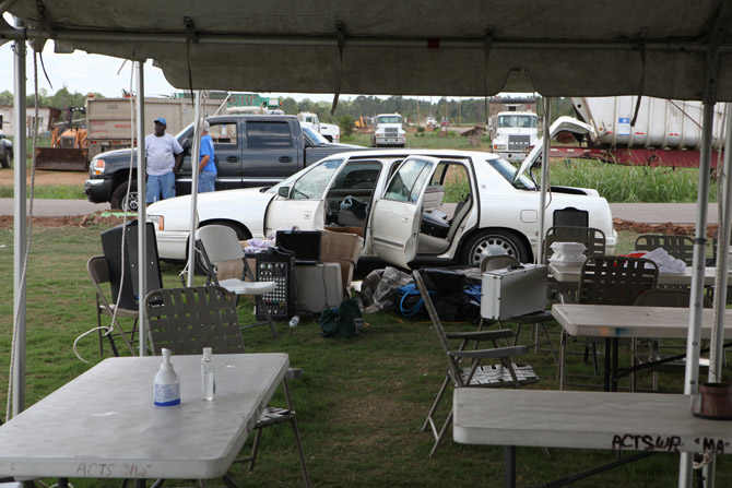 The goal of our church was to go and cook for the relief workers and the people there who were left homeless by the tornado. It was believed that there would be hundreds of these folks to feed and we took the appropriate amount of food, the equipment to cook it and the people to prepare and serve it. Amazingly, much of the food ended up being donated. It really was going to be a Herculean effort. It made my role seem even smaller.